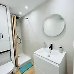 Appartement Cosy - Cap D'Agde Proche Plage Et Port - Parking有1间卧室. Appartement Cosy - Cap D'Agde Proche Plage Et Port - Parking公寓有1间浴室.这些浴室带有分开的洗手间 和淋浴.